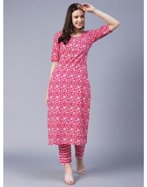 GoSriKi Women Pink Straight Printed Kurta With Trouser