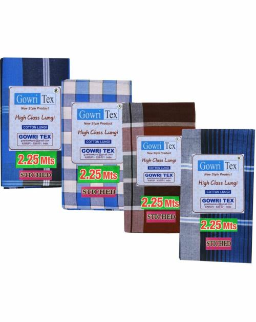 GOWRI TEX Men Multicolor Checkered Cotton Blend Stitched Lungi - Free Size (Pack of 4)