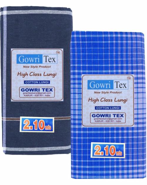 GOWRI TEX Men Multicolor Striped Cotton Blend Lungi - Free Size (Pack of 2)
