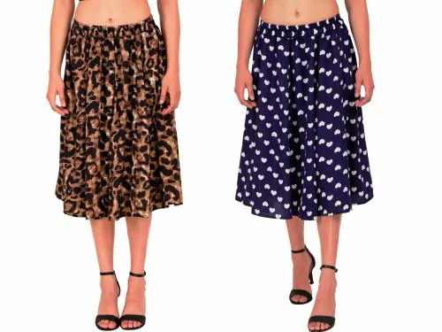 Grace Diva Multicolored Printed Polyester Flared women skirt 26 inches Long skirt: Combo of 2 set