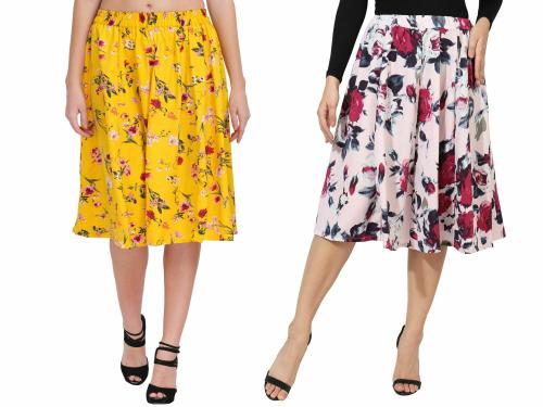 Grace Diva Multicolored Printed Polyester Flared women skirt 26 inches Long skirt: Combo of 2 set