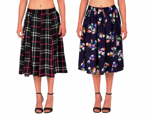 Grace Diva Multicolored Printed Polyester Flared women skirt 26 inches Long skirt: Combo of 2 set