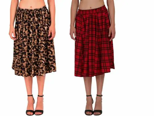 Grace Diva Multicolored Printed Polyester Flared women skirt 26 inches Long skirt: Combo of 2 set