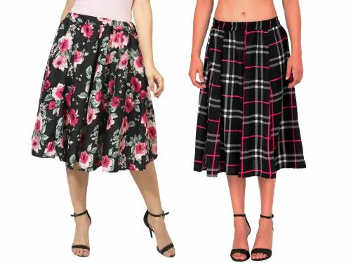 Grace Diva Multicolored Printed Polyester Flared women skirt 26 inches Long skirt: Combo of 2 set