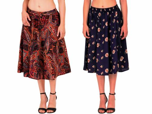 Grace Diva Multicolored Printed Polyester Flared women skirt 26 inches Long skirt: Combo of 2 set