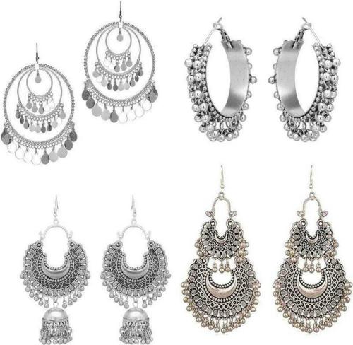 Grand Jewels Alloy Drops and Danglers Earrings Silver (Women) (pack of 4)