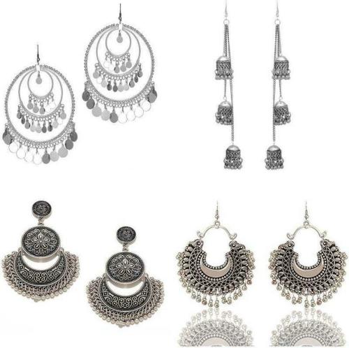 Grand Jewels Alloy Jhumki Earrings Silver (Women, Girls) (pack of 4)