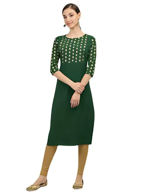 GRANTHAM Women Green Printed Viscose Kurti (XL)