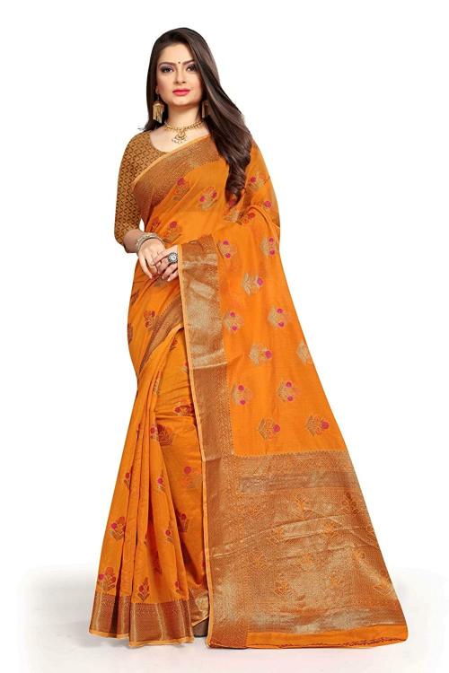 grantham Women Mustard Solid Cotton Traditional Saree (Free Size)