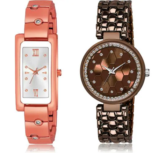 GROOT Latest Valentine Professional Chain And Bangle Rose Gold And Brown Colour Analog Metal And Stainless Steel Belt 2 Watch Combo For Women And Girls - G656-GL271