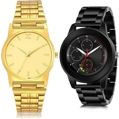 GROOT Modern Traditional Chain And Black Chain Gold And Black Colour Analog Metal And Stainless Steel Belt 2 Watch Combo For Boys And Men - BCPL32-(11-S-20)