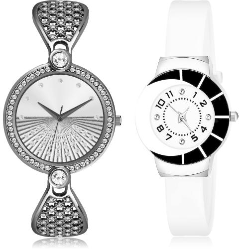 GROOT Modish Analogue Bracelet Bangle Chain And Plastic Black And White Colour Analog Metal And Plastic Belt 2 Watch Combo For Women And Girls - GM248-G11