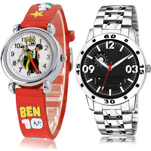 GROOT Treading Professional Ben 10 Kids And Silver Chain Red And Silver Colour Analog Plastic And Stainless Steel Belt 2 Watch Combo For Boys And Men - BK120-(20-S-19)