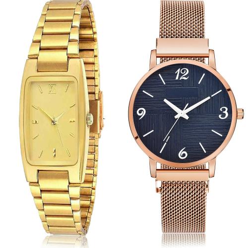 GROOT Treading Quartz Golden Couple Chain And Magnet Chain Gold And Rose Gold Colour Analog Metal Belt 2 Watch Combo For Women And Girls - GCPL35-GM224