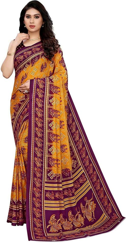 Grubstaker Women Yellow Printed Art Silk Regular Saree