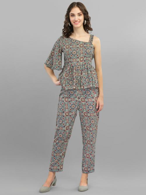 Gufrina Women Blue Printed Chanderi Top and Pant