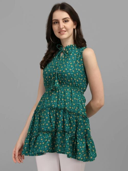 Gufrina Women Dark Green Floral Print Viscose Rayon Top