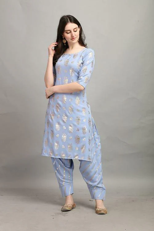 Gufrina Women Light Blue Printed Rayon Kurta and Pyjama Set