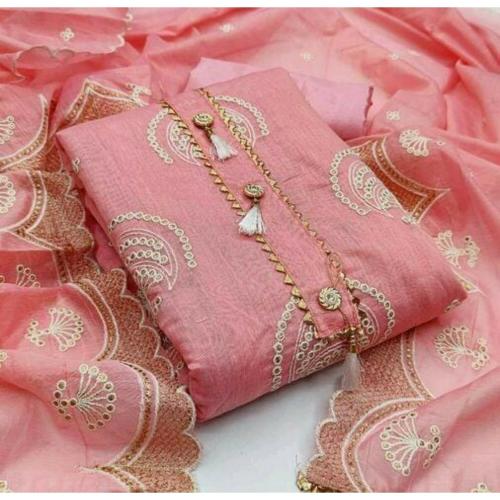 GURHAL Embroidered Chanderi Unstitched Dress Material Pink