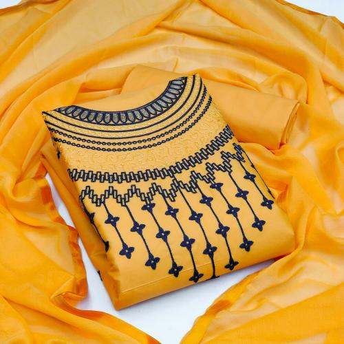 GURHAL Embroidered Cotton Unstitched Dress Material Yellow