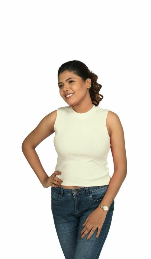 Habbada Fashions Crop Tops Polo neck sleeveless Cream