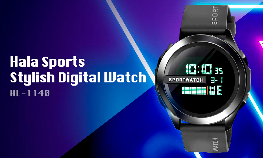 Hala HL-1140 Sports Stylish Digital Watch Black Dial, Blue Strap For Men & Boys