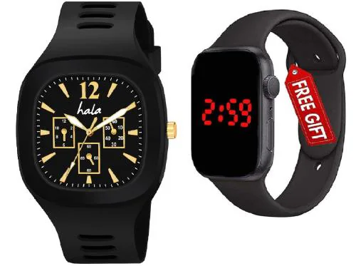 Hala HL-3230 Black Miller Analog -Digital LED -SQR Watch - For Boys & Girls
