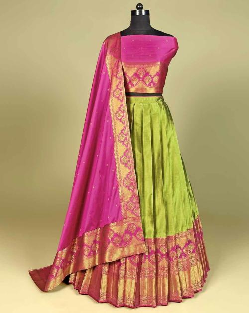 HALFSAREE STUDIO Light Green Zariwork Banarasi Silk Lehenga Choli
