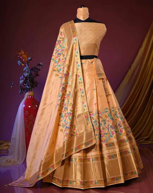 HALFSAREE STUDIO Peach Color Banarasi silk Latest Lehenga Choli