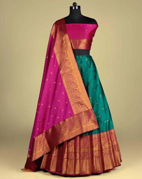 HALFSAREE STUDIO Rama Zariwork Banarasi Silk Lehenga Choli