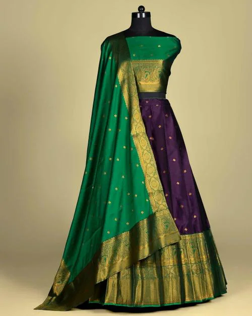 This Banarasi Zari work Lehenga Choli is gorgeous and elegant traditional Indian ensemble that is perfect for special occasions. This Half Saree is made of Banarasi silk fabric.