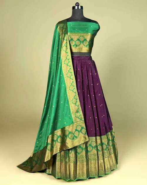 - Work: Lehenga: Zari Weaving, Blouse: Zari Weaving, Dupatta: Zari Weaving