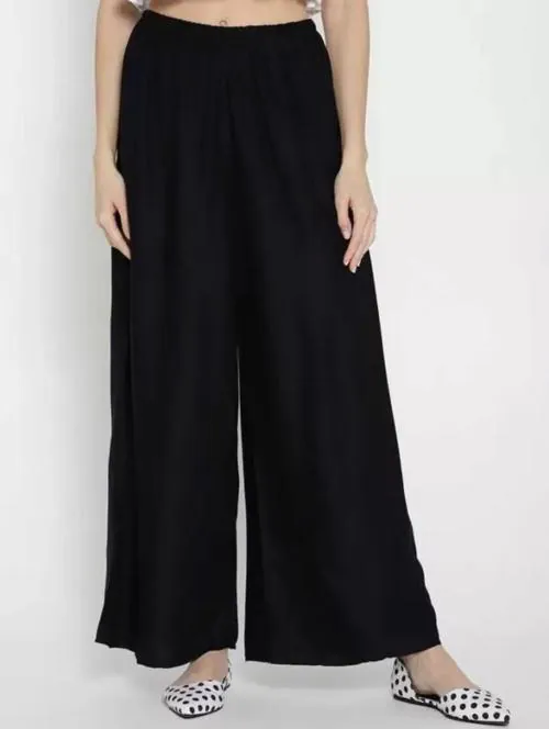 HAMH Women's Regular Plain Wide Palazo Set for Girls |Solid/Plain Regular Fit Palazzo-L-Black