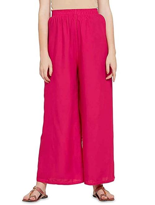 HAMH Women's Regular Plain Wide Palazo Set for Girls |Solid/Plain Regular Fit Palazzo-XXL-Pink