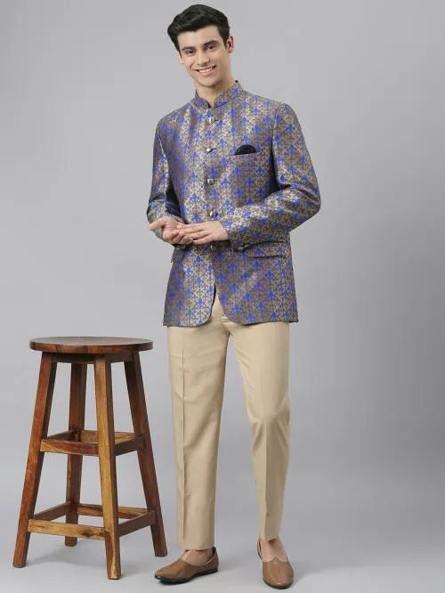 hangup Men Blue Printed Polyester Viscose 2-Piece Sets