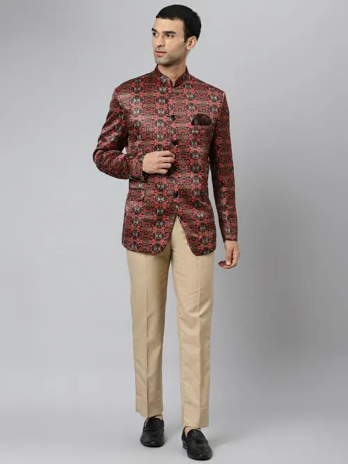 hangup Men Brown Printed Polyester Viscose 2-Piece Sets