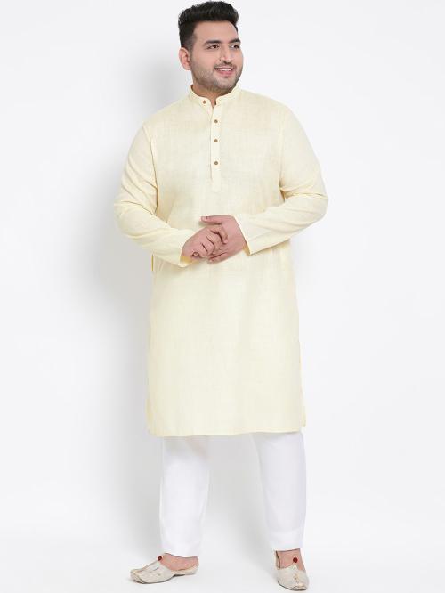 hangup Men Yellow Solid Cotton Linen Blend Kurta Pyjama Set