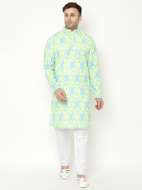 hangup Men Green Printed Cotton Blend Kurta Pyjama Set