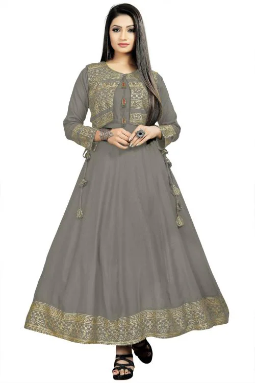 Happy Design Women Grey Printed Rayon Anarkali Kurta
