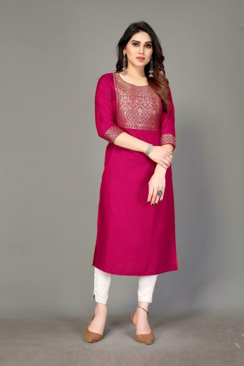 Happy Design Women Pink Woven Design Silk Blend Straight Kurta