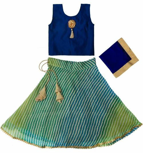 HARI CHARAN ENTERPRISE _ D9Kids Girls Blue Embroidered Cotton Lehenga, Choli and Dupatta Set