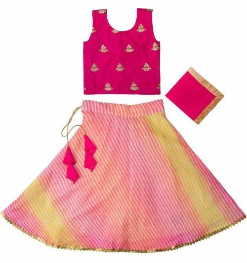 HARI CHARAN ENTERPRISE _ D9Kids Girls Pink Embroidered Cotton Lehenga, Choli and Dupatta Set