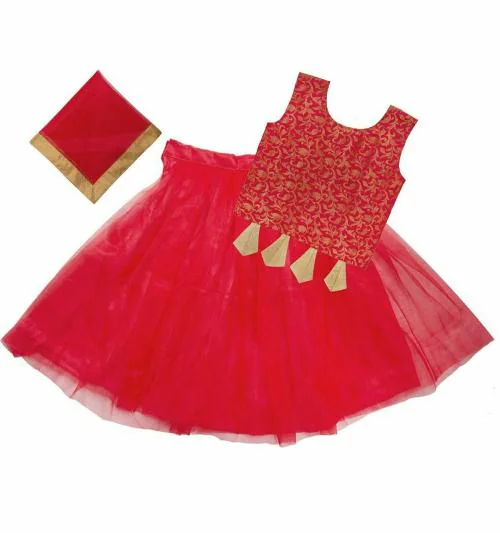 HARI CHARAN ENTERPRISE _ D9Kids Girls Pink Solid Cotton Lehenga, Choli and Dupatta Set