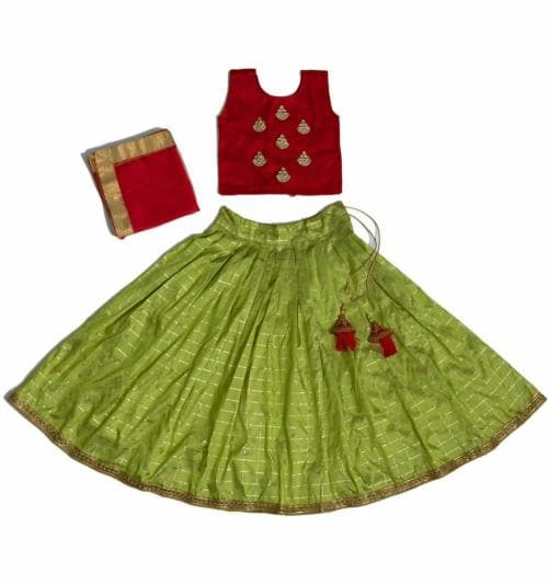 HARI CHARAN ENTERPRISE _ D9Kids Girls Red Checkered Cotton Lehenga, Choli and Dupatta Set