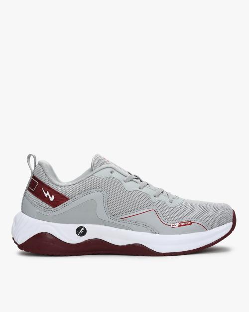- Enjoy comfort and support with this pair of running shoes for daily fitness walks. These men's running shoes are built with Springy Fit technology that moves air from the heel to the forefoot and back as you move keeping your journey light and comfortable. The breathable mesh upper is made of premium quality which delivers ventilation, and the adjustable lacing system provides a secure fit and its phylon sole has an anti-skid feature and is abrasion resistant which adds durability.