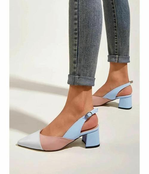 HASTEN Heeled Sandals Women Colourblocked Pumps Blue
