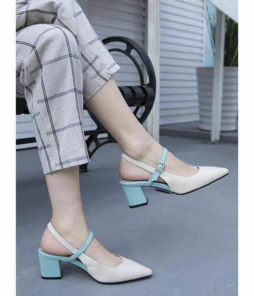 HASTEN Heeled Sandals Women Colourblocked Pumps Cream
