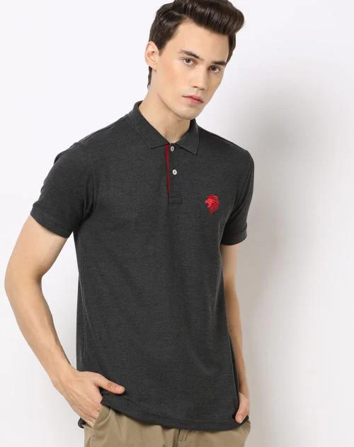 Regular Fit Heathered Polo T-Shirt with Vented Hemline
