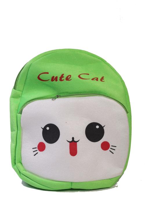 Heaven Decor Green Cute Cate Velvet Soft Plus Kids School Bag Nursury class to 5 ( Size - 14 inch )