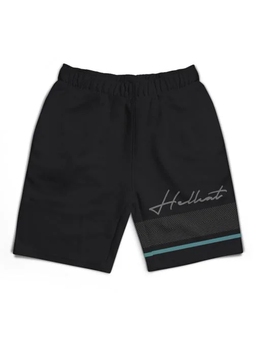 HELLCAT Black Trendy Typographic With Branding Printed Shorts for Boys